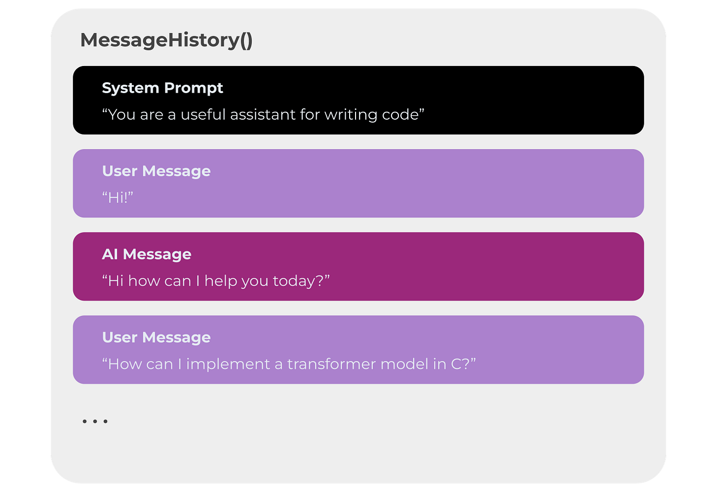 OpenAI’s chat LLMs require message history. As a reminder here is how the message history works:
